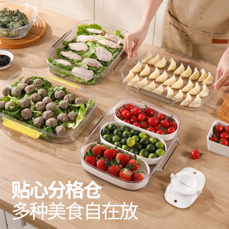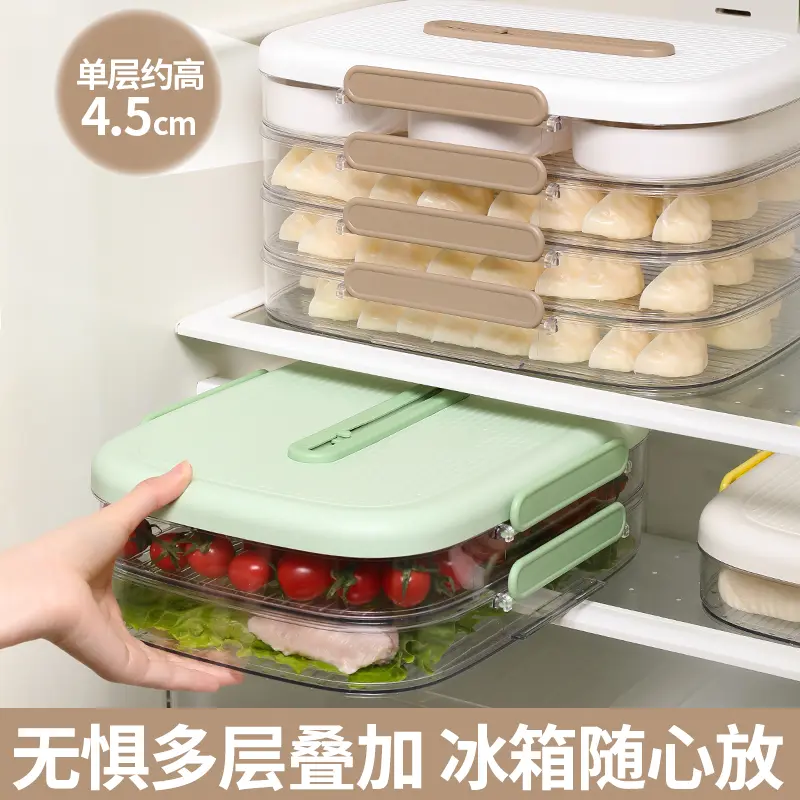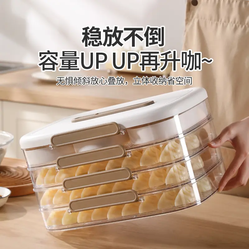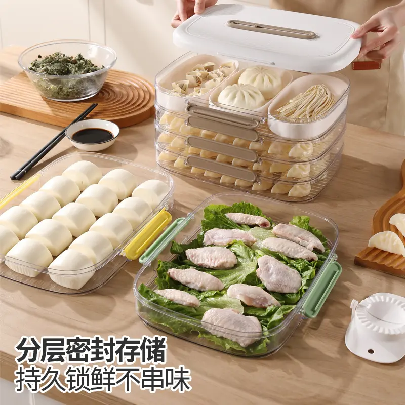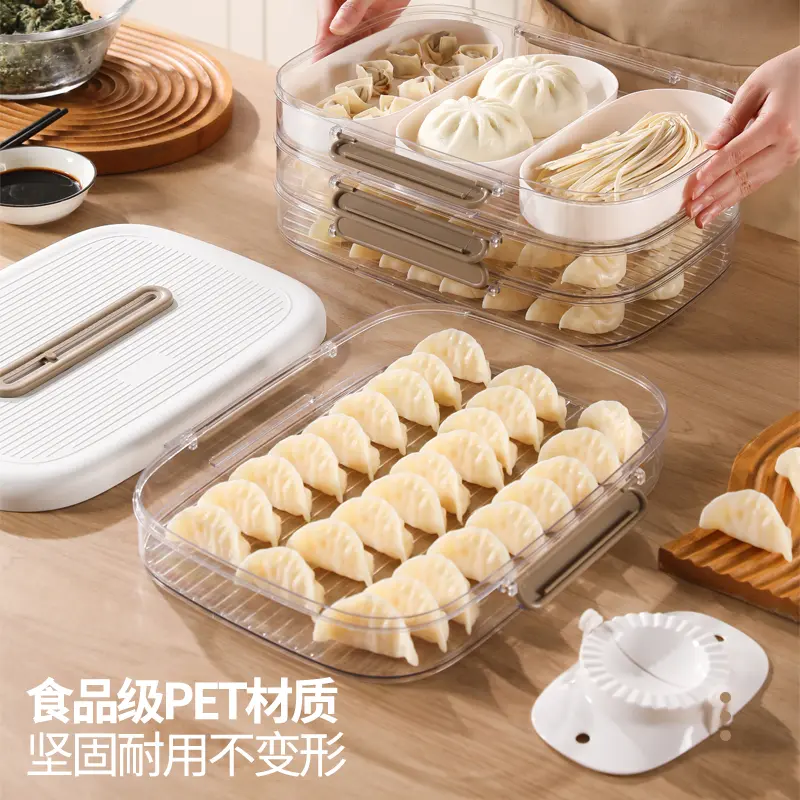 The storage box is made from food-grade, BPA-free plastic, ensuring safety for direct contact with food. The transparent container allows easy visibility of contents, while the multi-layer compartment design prevents dumplings from sticking together or being crushed.